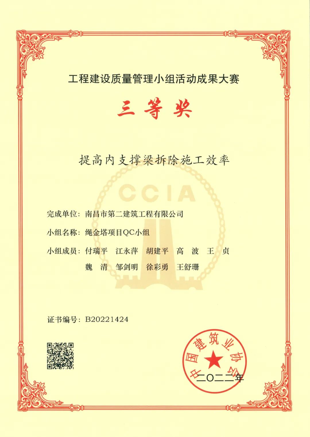 近日,公司繩金塔項(xiàng)目QC小組在2022年全國(guó)工程建設(shè)質(zhì)量管理小組活動(dòng)成果大賽評(píng)選中榮獲三等獎(jiǎng)。