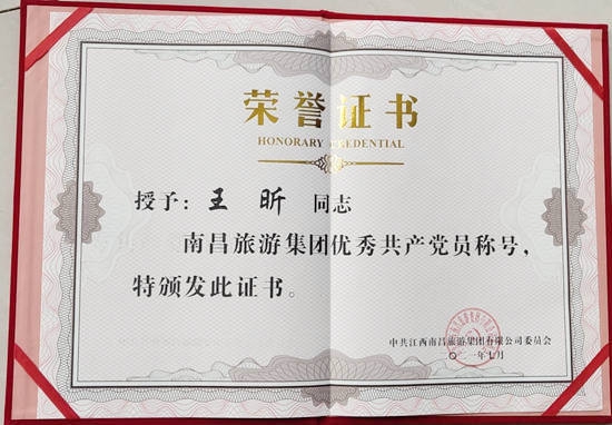 在隆重紀念中國共產(chǎn)黨成立100周年之際,南昌市國資委和南昌旅游集團于近日對一批來自各條工作戰(zhàn)線上的優(yōu)秀黨員和優(yōu)秀黨務工作者及先進基層黨組織進行了表彰,獎勵他(她)們在各自的工作崗位上履職盡責創(chuàng)先進、立足崗位爭優(yōu)秀,在推動企業(yè)高質(zhì)量發(fā)展中充分發(fā)揮戰(zhàn)斗堡壘和先鋒模范作用。其中,公司陳國明同志榮獲市國資委“優(yōu)秀共產(chǎn)黨員”稱號,公司黨委被評為南旅集團“先進基層黨組織”,黨員職工胡穎明、徐小蘭、王昕、王貞同志獲南旅集團“優(yōu)秀共產(chǎn)黨員”稱號。