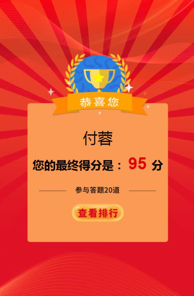 該競賽是以“傳承紅色基因 守牢紀(jì)法底線”為主題,通過線上學(xué)習(xí),線上答題的形式,以考促學(xué),以考驗效,營造了學(xué)習(xí)“四史”的濃厚氛圍,重點教育黨員干部深刻認識“兩個確立”的決定性意義,增強“四個意識”、堅定“四個自信”、做到“兩個維護”。同時,把答題活動作為加強黨員干部紀(jì)法教育的重要載體進行落實,激發(fā)黨員干部學(xué)習(xí)紀(jì)法知識的積極性、主動性,牢固樹立紀(jì)法意識,自覺嚴守紀(jì)律規(guī)矩、不逾紀(jì)法底線,廉潔從政從業(yè)、規(guī)范行權(quán)用權(quán)。